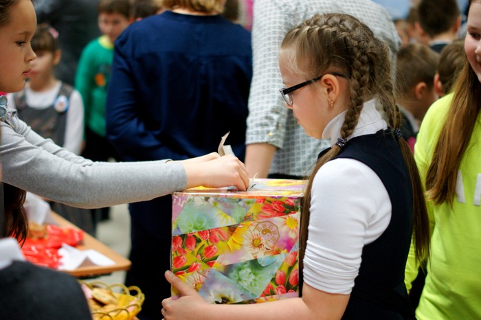 Школьников, пожелавщих принять участие в ярмарке в качестве кондитеров и продавцов своей выпечки, а также искусных поделок из различных материалов, оказалось немало. Покупателями стали учащиеся и педагоги, а также родители и гости ярмарки. Торговля шла очень бойко — вкусные кондитерские изделия разошлись буквально в первые же минуты ярмарки, а все поделки тоже надолго не залежались на импровизированных прилавках.