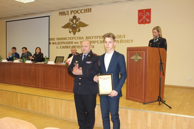 Поступок молодого человека оценен. 23 января Управление МВД России по Приморскому району в торжественной обстановке выразило Алексею благодарность за проявленное мужество при спасении человеческой жизни, неравнодушие и активную жизненную позицию.