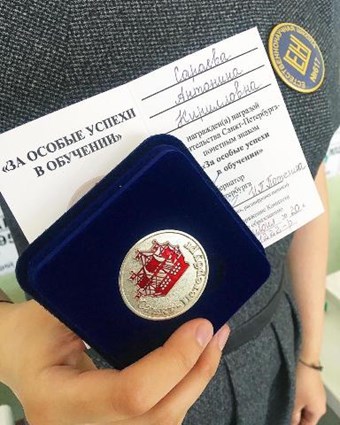 Выпускники 2020 года Сараева Антонина и Алешин Елизар награждены почетным знаком Правительства Санкт-Петербурга "За особые успехи в обучении".