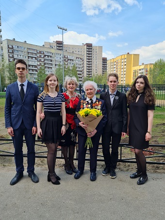 В этой акции приняли участие первый директор школы 617 Смирнова Галина Степановна и наши ученики 11л и 11м классов. Мороз Анастасия, Новицкий Наум, Соловьёв Денис и Регент Диана.