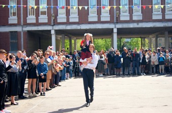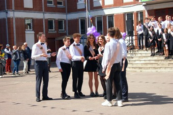 Долгая подготовка и множество репетиций! И вот, в тишине школьного двора, звучат слова: «На торжественную линейку приглашаются ученики 11ам и 11ли классов!» Открывает мероприятие директор школы, Смирнова Ольга Игоревна. С торжественной речью она обращается к выпускникам и родителям, благодарит учителей и классного руководителя Дмитрик А.А.! А дальше события начинают мелькать словно в ярком и солнечном калейдоскопе: поздравления от первоклашек, сюрприз от выпускников, прощальный вальс, песня классного руководителя, творческий номер родителей и главная песня, покидающих родную школу, мальчишек и девчонок «… Так зачем же эти одиннадцать лет… Я куда-то так торопился…»