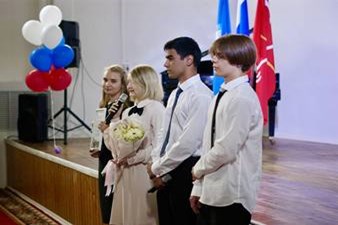 На церемонии вручения аттестатов также была награждена Ковтюшенко Софья и её родители. Она победила в олимпиаде по избирательному праву и избирательному процессу «Софиум» среди 11-х классов. Отметим, что Софья одержала первенство во второй раз – год назад она стала победителем заключительного этапа олимпиады «Софиум» в категории 10-х классов.