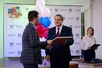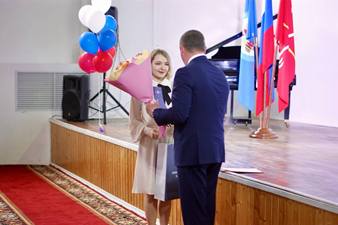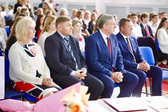 На церемонии вручения аттестатов также была награждена Ковтюшенко Софья и её родители. Она победила в олимпиаде по избирательному праву и избирательному процессу «Софиум» среди 11-х классов. Отметим, что Софья одержала первенство во второй раз – год назад она стала победителем заключительного этапа олимпиады «Софиум» в категории 10-х классов.