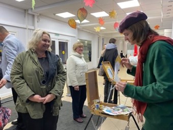 Каждый год 5 октября учителей нашей школы ожидает большой сюрприз! В этот раз в фойе школы обосновались УЛИЧНЫЕ ХУДОЖНИКИ, с самого утра встречавшие учителей. Звучит романтическая музыка, мастера принимаются за работу. На глазах изумленной публики всего за одну минуту создается шедевр! Каждый педагог получает свой ПОРТРЕТ, да какой… выполненный в стиле карандашно-угольного рисунка, с подписью «День учителя 2022».
