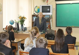 В 6б классе тематическое мероприятие провел житель блокадного Ленинграда – Людвиг Ромуальдович Гаврилович. Он рассказал ребятам о жизни в блокадном городе, об эвакуации, о жизни в заполярье, о боевых действиях советских войск против фашистских захватчиков на Севере. И подарил две книги, в которых он изложил свои воспоминания об этих событиях.