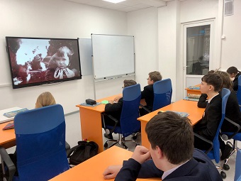 В фойе школы можно увидеть исторические блокадные фотографии, свечи памяти, живые цветы. В классах прошли Уроки Мужества о бессмертном подвиге ленинградцев, а также показан документальный фильм "Блокада. Дети".
