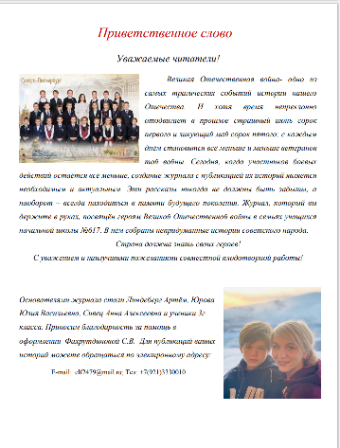 Основателями журнала стали Линдеберг Артём, Юрова Юлия Васильевна, Сивец Анна Алексеевна и ученики 3г класса. Приносим благодарность за помощь в оформлении Фахрутдиновой С.В. Д