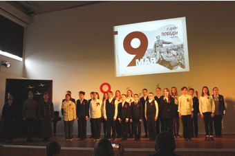 Каждый класс подготовил песню военных лет. Звучали стихи, шли фотографии "Бессмертного полка".