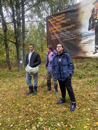 26 сентября ученики 9в, 9б и 9а классов побывали на экскурсии по местам ожесточённых боёв на Волховском направлении, очень значимой для воспитания у подростков патриотизма и интереса к истории Отечества. Наш экскурсовод, краевед Владимир Бабицкий, показал места сражений с фашистскими захватчиками, рассказал о защитниках Ленинграда и их подвиге. Слова этого удивительного человека, знающего о событиях ВОВ очень много, запали в душу каждого, побудив к размышлениям и внутреннему разговору с самим собой. Надолго запомнится дорога, которой шёл наш "отряд" : пришлось столкнуться с трудностями, преодолевая болота, реку, лесные пути. Ребята увидели траншеи, воронки, оставленные снарядами противника, узнали о Бессмертном подвиге солдат и матросов, которые насмерть стояли за каждую пядь земли, почтили память погибших героев минутой молчания. Тихо было на могилах защитников родной земли. Сама природа замерла в знак уважения и преклонения перед их подвигом.