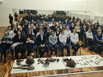 Ребята проявляли живой интерес к уроку, знакомились с предметами быта и амуниции солдат и командиров РККА, активно задавали вопросы.