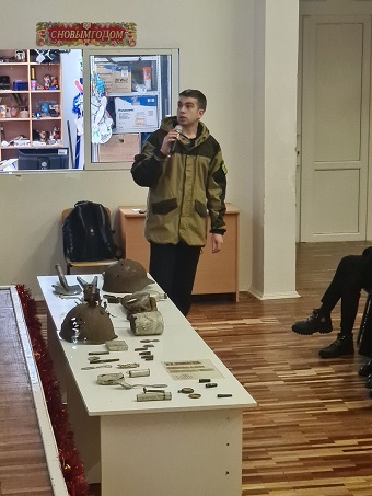 15 декабря бойцы поискового отряда "Ингрия" Юрий Петёвка и Анна Никитенкова (педагог-организатор школы, учитель изобразительного искусства Анна Олеговна Никитенкова) провели урок мужества для учащихся 7-х классов нашей школы.