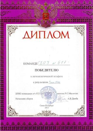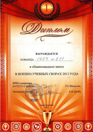 21.05.2013 года на базе в/ч 03213 пос. Каменка состоялись однодневные военно-учебные сборы для юношей 10-х классов согласно прохождению раздела основы военной службы курса ОБЖ. Наши ребята стали победителями в легкоатлетической эстафете и заняли I место в общекомандном зачете.