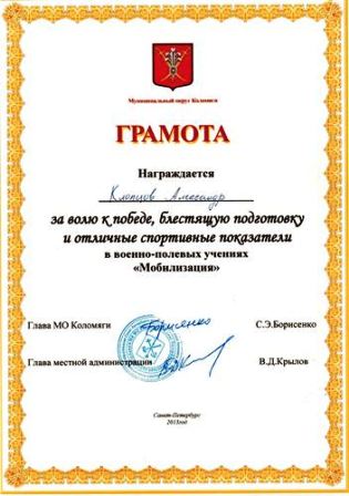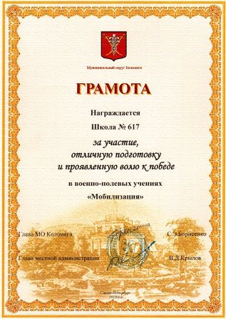 10 сентября 2013 года в Петергофе, на базе клуба "Звезда", проводились военно-полевые учения "Мобилизация", которые были организованы Муниципальным округом Коломяги. В мероприятии приняли учащиеся 10л и 11л классов, а также Никулина Светлана Викторовна - преподаватель-организатор ОБЖ.