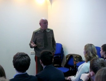 На урок мужества для учащихся 10-х классов на который был приглашен генерал-лейтенант в отставке Шишаков Евгений Ионович при содействии Отдела военного комиссариата Приморского района.