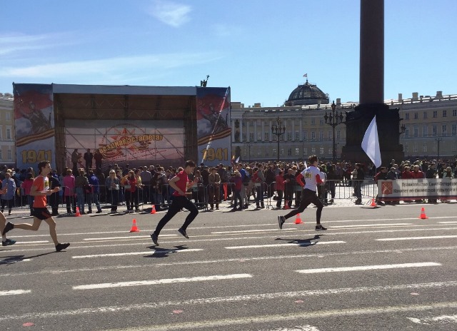 В этом году Звездная эстафета проводилась по маршруту: Дворцовая площадь – Дворцовый проезд – Дворцовая набережная – Мраморный переулок – Марсово поле - набережная Мойки – Дворцовая площадь.