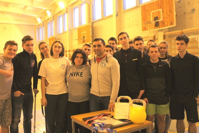 Занятие проводил Сергей Анатольевич Рачинский - заслуженный мастер спорта России по гиревому спорту, заслуженный тренер России, многократный чемпион России и девятикратный чемпион мира, четырехкратный чемпион ВС РФ, двукратный чемпион ВС РФ в гиревой эстафете, рекордсмен книги рекордов Гиннесса по тяжелой атлетике и гиревому спорту. Интерес ребят вызвало и то, что поднимание гири можно назвать универсальным, так как он может подойти всем, главное, чтобы позволяло здоровье. В настоящее время этим видом спорта увлеклись женщины и девушки.