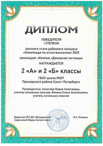 - Команда 2-х классов - Диплом победителя за творческую работу «Домашние питомцы»