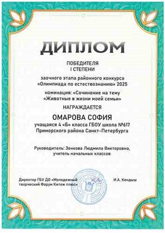 - Омарова София, 4б класс - Диплом победителя 1 степени