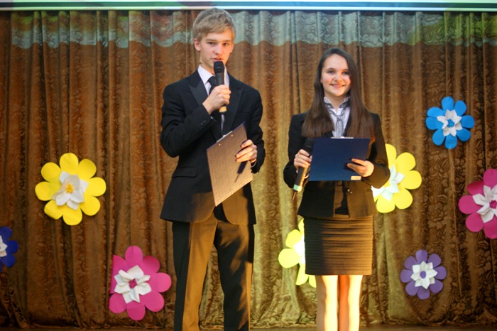 Ведущих концерта, ученика 9л Гурьева Никиту и ученицу 7а Филиппову Александру