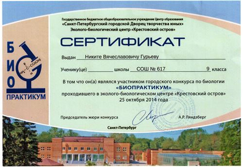 15 октября состоялся первый этап городского конкурса «Биопрактикум», который проходил на базе эколого-биологического центра «Крестовский остров» ГБОУ ЦО «СПб ГДТЮ». К участию в конкурсе приглашались школьники 8—10 классов общеобразовательных школ Санкт-Петербурга. От нашей школы принимали участие уч-ся 8-9 классов.