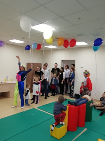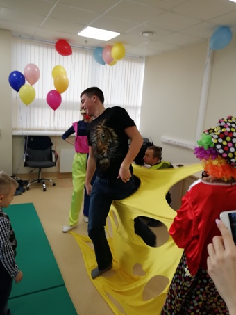 Для детей на время проведения занятий с их родителями была организована развлекательная программа, в которой в качестве волонтеров приняли участие обучающиеся 10м химико-биологического класса нашей школы. Волонтеры – это люди, которые готовы добровольно и безвозмездно потратить свои силы и время на пользу общества или конкретному делу. Наши школьники выступили в качестве помощников клоунам-аниматорам на данном мероприятии: рисовали и танцевали вместе с детьмя, играли в игры, отпускали «в небо» воздушные шарики, словом, способствовали созданию положительных эмоций и здорового микроклимата в разновозрастном коллективе.