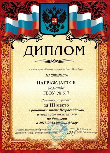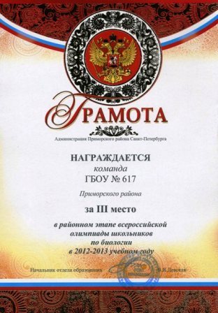 | 2003-2004 | биология | Рунев Дмитрий | 8А | Цымбал А.А. | диплом 2 ст |