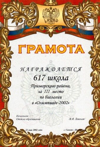 | 2002-2003 | биология | Осипенко Павел | 10А | Фролов А.А. | диплом 3 ст |