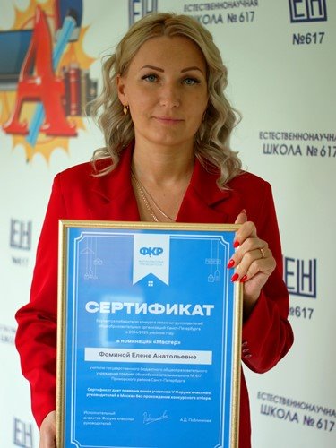 Педагог школы №617 Елена Фомина победила в Конкурсе классных руководителей в номинации «Мастер».