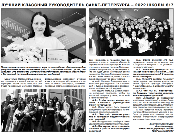 Лучший классный руководитель Санкт-Петербурга – 2022 школы 617