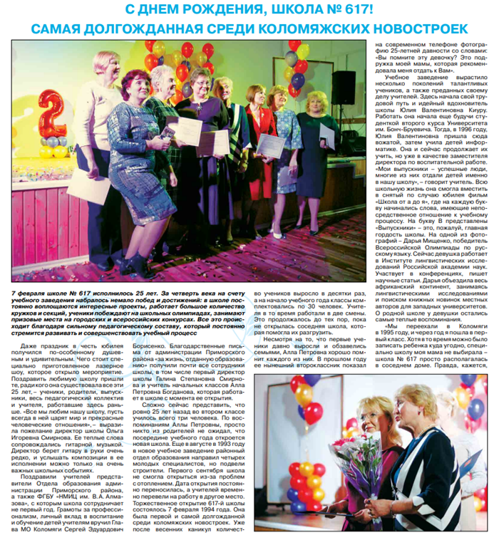С днем рождения, школа № 617! Самая долгожданная среди Коломяжских новостроек
