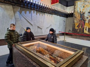 Также ребята посетили подземный памятный зал, где познакомились с экспозицией "История обороны и блокады Ленинграда"