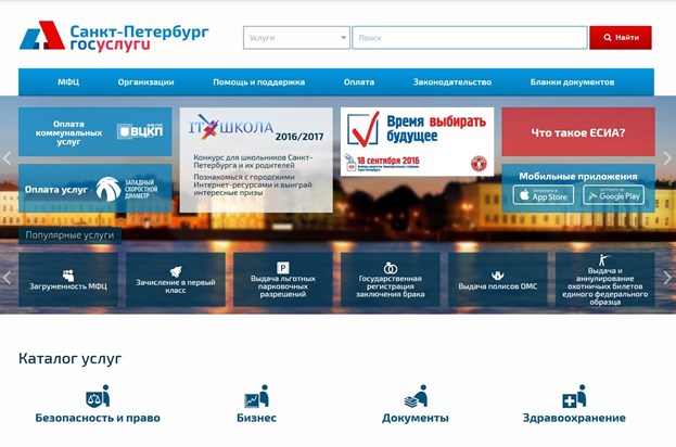 Портал госуслуг Санкт-Петербургаgu.spb.ruс 2007 года является единым путеводителем по госуслугам Петербурга. Здесь можно не только ознакомиться с порядкомполучения государственных и муниципальных услуг на территории Санкт-Петербурга, но и подать электронные заявления более чем по 150 госуслугам. Любой петербуржец может без труда подать онлайн-заявление в ЗАГС, дистанционно записаться к врачу или отдать ребенка в детский садик и школу. На обновленном Порталегосуслуг Санкт-Петербурга появилось немало полезных нововведений, при этом сохранились все функции и возможности предыдущей версии.