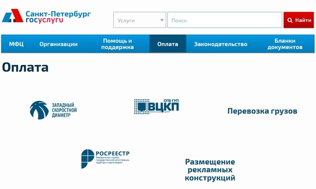 Стал более удобным и раздел «Оплата». Как и прежде, он предназначен для совершения электронных платежей и уплаты государственных пошлин по самым популярным услугам. В данном разделе пользователь может оплатить коммунальные услуги ВЦКП ЖХ, услуги Росреестра или госпошлину Комитета по благоустройству за перевозку особого вида грузов, а также внести средства на счет своего транспондера для проезда по Западному скоростному диаметру (ЗСД). Среди новшеств –возможность уплаты госпошлины за размещение рекламных конструкций. Оплату можно произвести эмитированной любым банком картой (Visa/VisaElectron, MasterCard, Maestro) или из электронного кошелька «Яндекс.Деньги».Обработка персональных данных происходит на защищенной странице процессинговой системы,прошедшей международную сертификацию, а это значит, что пользоваться разделом «Оплата» абсолютно безопасно.